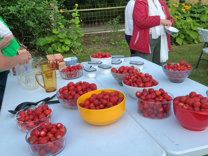 Der har ikke været megen tid i egen have i juni. Vi havde i stedet en fremragende haverejse til Norge med skønne deltagere og senere et fint jordbær arrangement hos planteskolen Hillis. Se billederne. Der bliver ingen rødbeder, bønner, drueagurker, asteres med mere i år - sneglene er i overtal og monster sultne. Heldigvis fik jeg besøg af min søster fra Norge, der gav en hånd med lugningen, det var også virkelig hyggeligt. Som altid tog vi på planteskoleturné. Rosenbilledet er min egen norske Hurdalsrose.