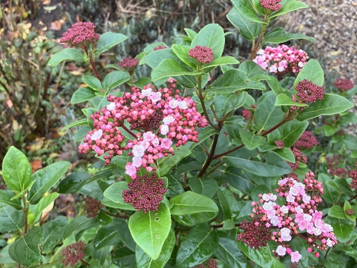 Det har været en ren nydelse med det flotte efterårsvejr og de fine farver i have og natur. Det sidste er høstet i drivhuset. For første gang har jeg prøvet at sætte ingefær, ikke det store udbytte, men det er da sjovt at få dem hjemmedyrket. Pelargonierne er ved hjælp af børnebørnene, kommet på plads indenfor, i vindueskarmene Oktoberkaktussen er klar til det store blomsterflor - egentlig synes jeg den er kønnest når blomsterne er i knop. Jeg holder meget af den stedsegrønne Vintersnebolle Viburnum Tinus, der blomstrer så fin nu. Den frøs lidt tilbage de første år, men nu ser den ud til at klare sig. Resten af november gøres der klar til at pynte op, indenfor og udenfor. Det er ikke min spidskompetence, så jeg vil glæder mig til Karsten Wejdemann kommer og demonstrerer hvordan man kan lave juledekorationer den 17. november på biblioteket i Haslev (se under arrangementer).