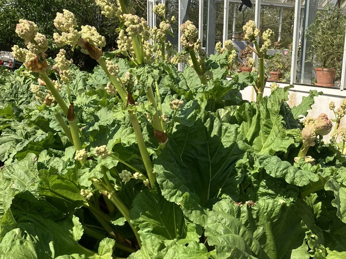 I maj måned er der meget at gøre i drivhus og have. Der prikles og plantes i drivhuset. Den tofarvede bøg er sprunget ud. De store prægtige rabarber pryder drivhusets endegavl, og fiskene svømmer livligt rundt i det store bassin.
