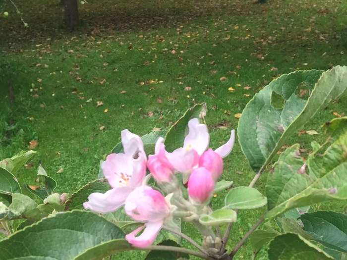 Roen har sænket sig , græskarene er høstet, delt ud til familie og venner og pynter ved døren. Det har været vådt, men lunt. Der er blomster på Ananasæbletræet. Det er ikke alle pelargonier der er kommet ind fra drivhuset endnu, men det skal jeg nok nå. Jeg glæder mig til foredraget med Pelargoniepigerne den 30. april næste år, har hørt at de også medbringer planter for salg:). Nu er tiden ved at være inde til at lave dekorationer og jeg vil hente inspiration den 23. november hvor Hanne Utoft kommer til Næstved.