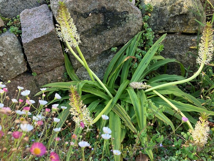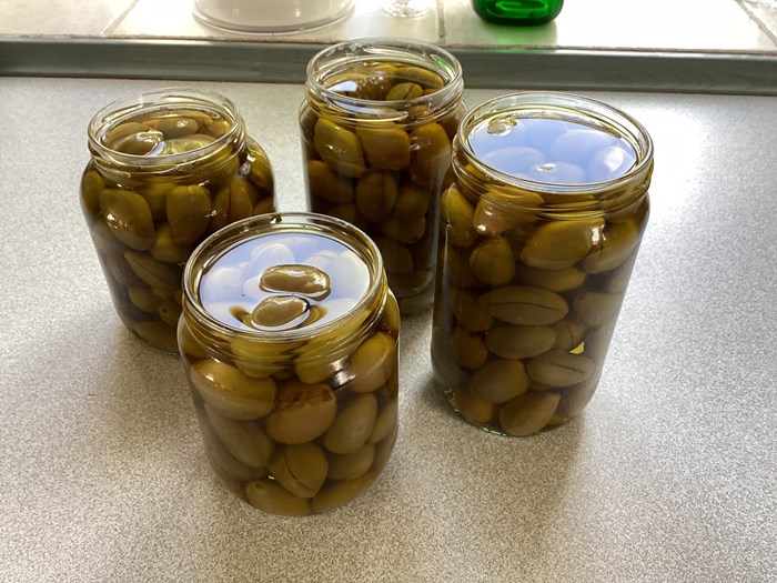Gad vide om det er fordi jeg er blevet pensioneret? Altså at der går længere tid mellem jeg får sat mig ved computeren..... Jeg har haft tid til at gå grundigere til værks med lugningen, faktisk har jeg totalryddet et stort bed for skvalderkål. Til gengæld har jeg ikke nået alle bed endnu. Det forhindrer mig dog ikke i at nyde det jeg når og det der kommer af sig selv. Se lige den flotte Cornus Kousa. Jeg har virkelig held med Amarylliser - disse to og yderligere en på vej, blomstrer på andet år - ude - i juli! De står i potter i højbedet med blåbærbuske. Jeg tager dem ind i et køligt og lyst rum før frosten kommer og sætter dem der ud om foråret. Billederne af de grønne sveskeblommer og glasset ved siden af er for at vise noget jeg begyndte med for et par år siden. Blommerne plukkes nu i juli, lægges i saltlage 7-8 uger, kommes herefter på glas med god olivenolie, og til næste sommer kan de nydes som grønne oliven med svag smag af blomme:). Husk at tage ud og se andres haver når de holder Åben have, det er sjovt, hyggeligt, man får gode ideer og gerne en god havesnak. God sommer