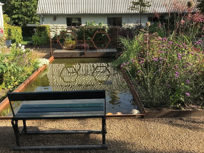 Efter en vel overstået åben have den 8., er der faldet lidt ro på aktiviteterne i haven. Ukrudtet gror voldsomt, det er vådt, al frugt og bær modner på en gang og arbejdet er genoptaget efter en skøn sommerferie. Jeg har besluttet at jeg ikke vil stresse over det jeg ikke kan nå, men sørge for at nyde bare at være. Sidde på bænken og hygge.