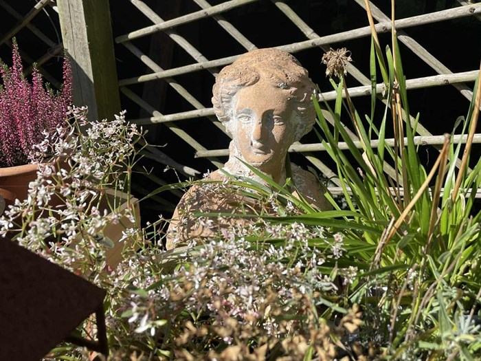 Billedkunstnerens have med pudsige indfald, smukke tableauer og planter, der akkompagnerer.