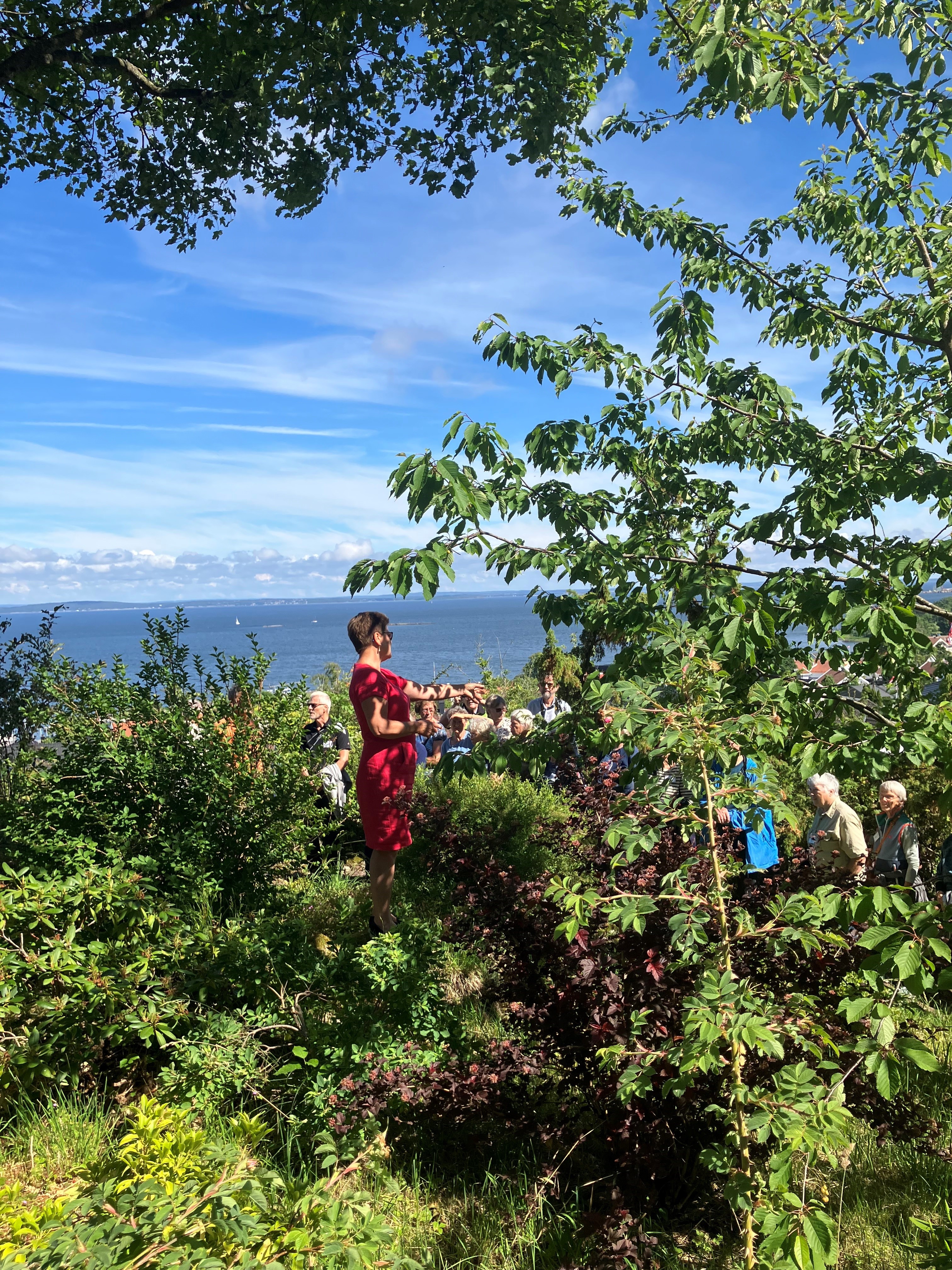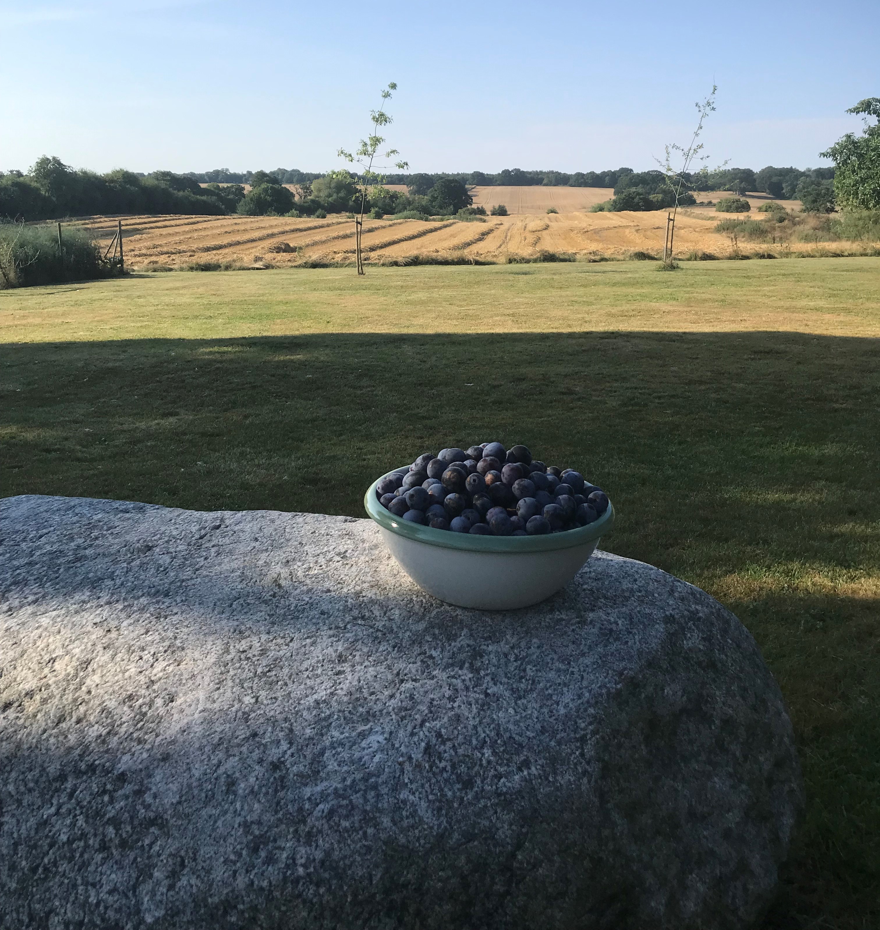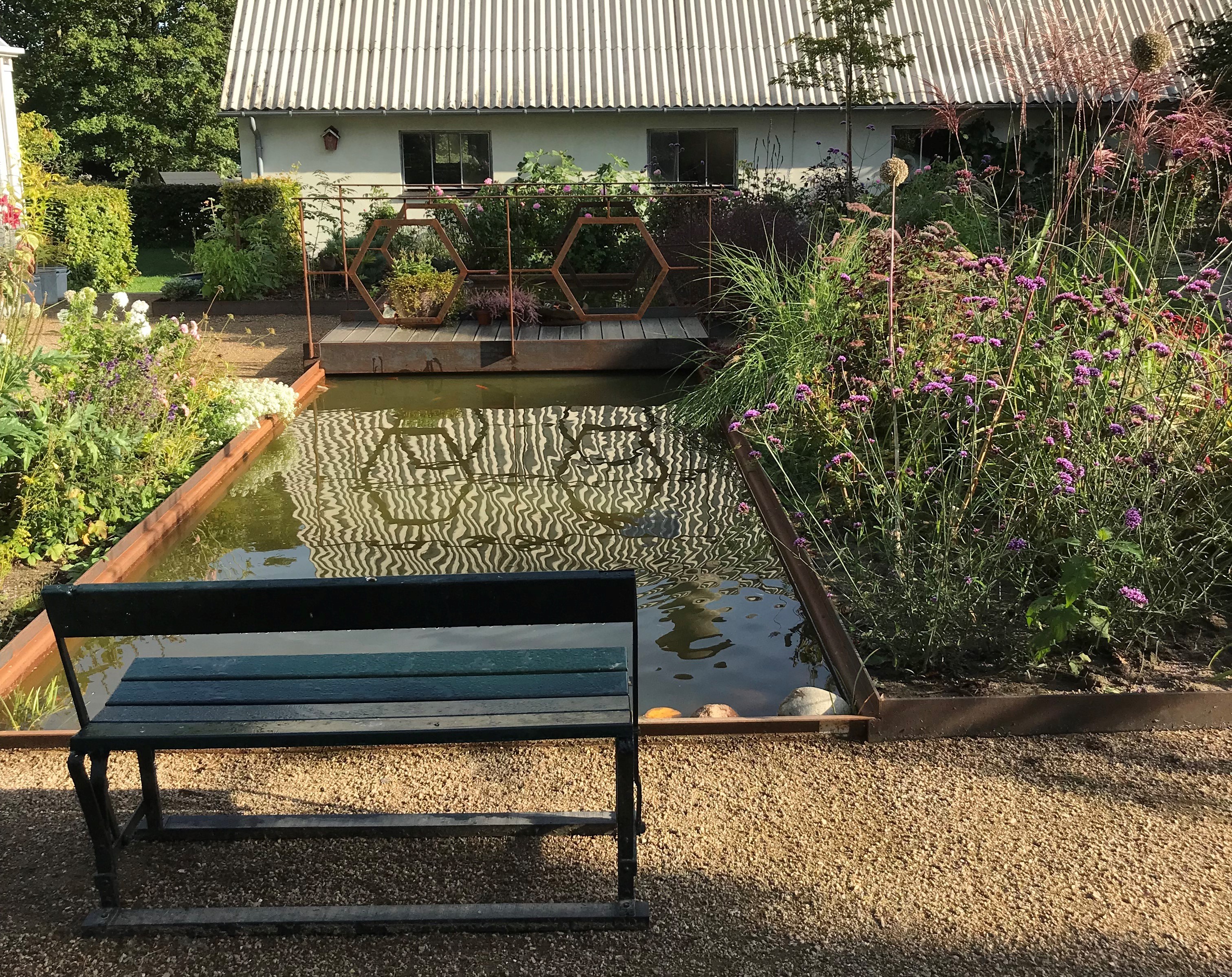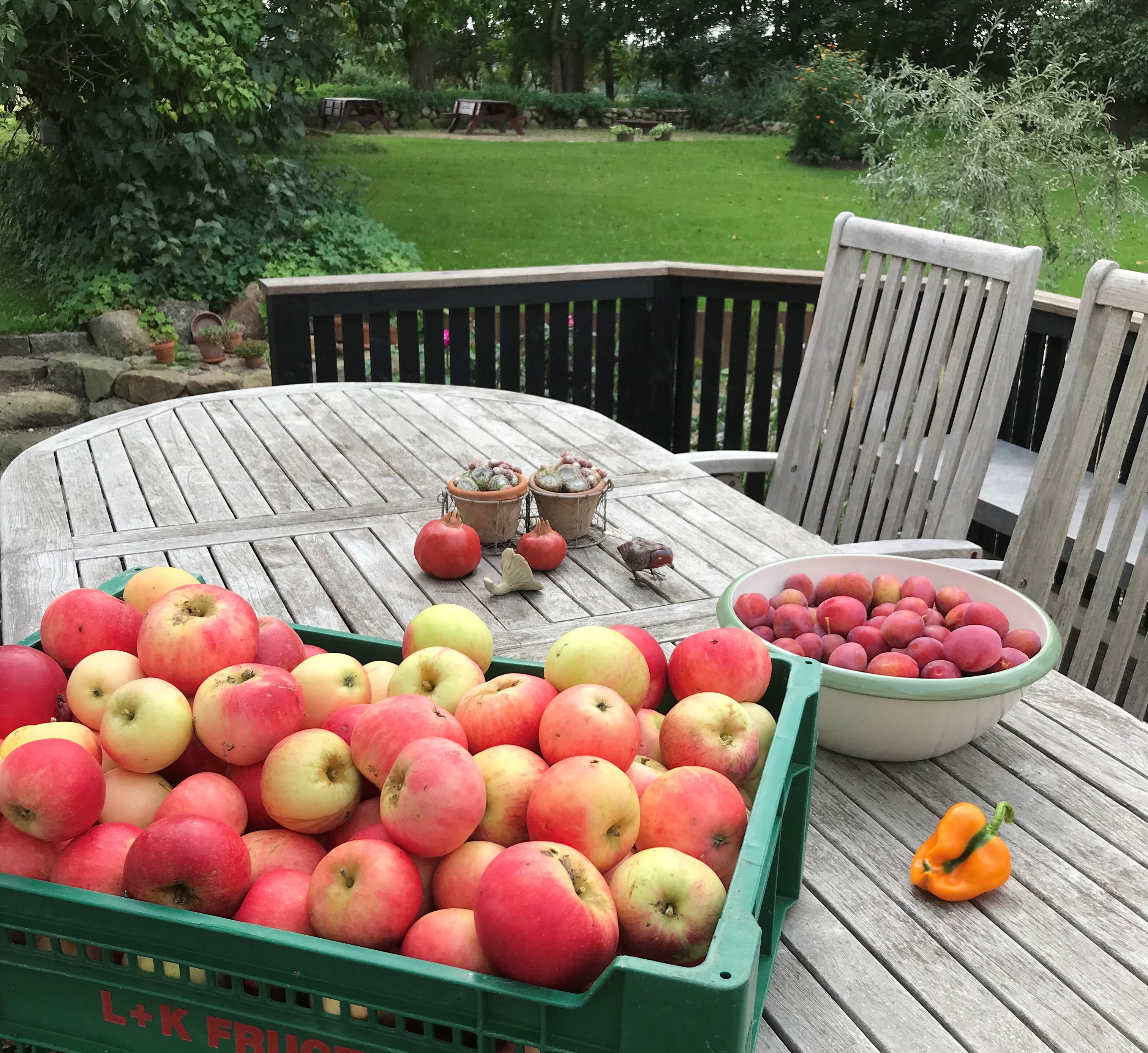Efter en vel overstået åben have den 8., er der faldet lidt ro på aktiviteterne i haven. Ukrudtet gror voldsomt, det er vådt, al frugt og bær modner på en gang og arbejdet er genoptaget efter en skøn sommerferie. Jeg har besluttet at jeg ikke vil stresse over det jeg ikke kan nå, men sørge for at nyde bare at være. Sidde på bænken og hygge.