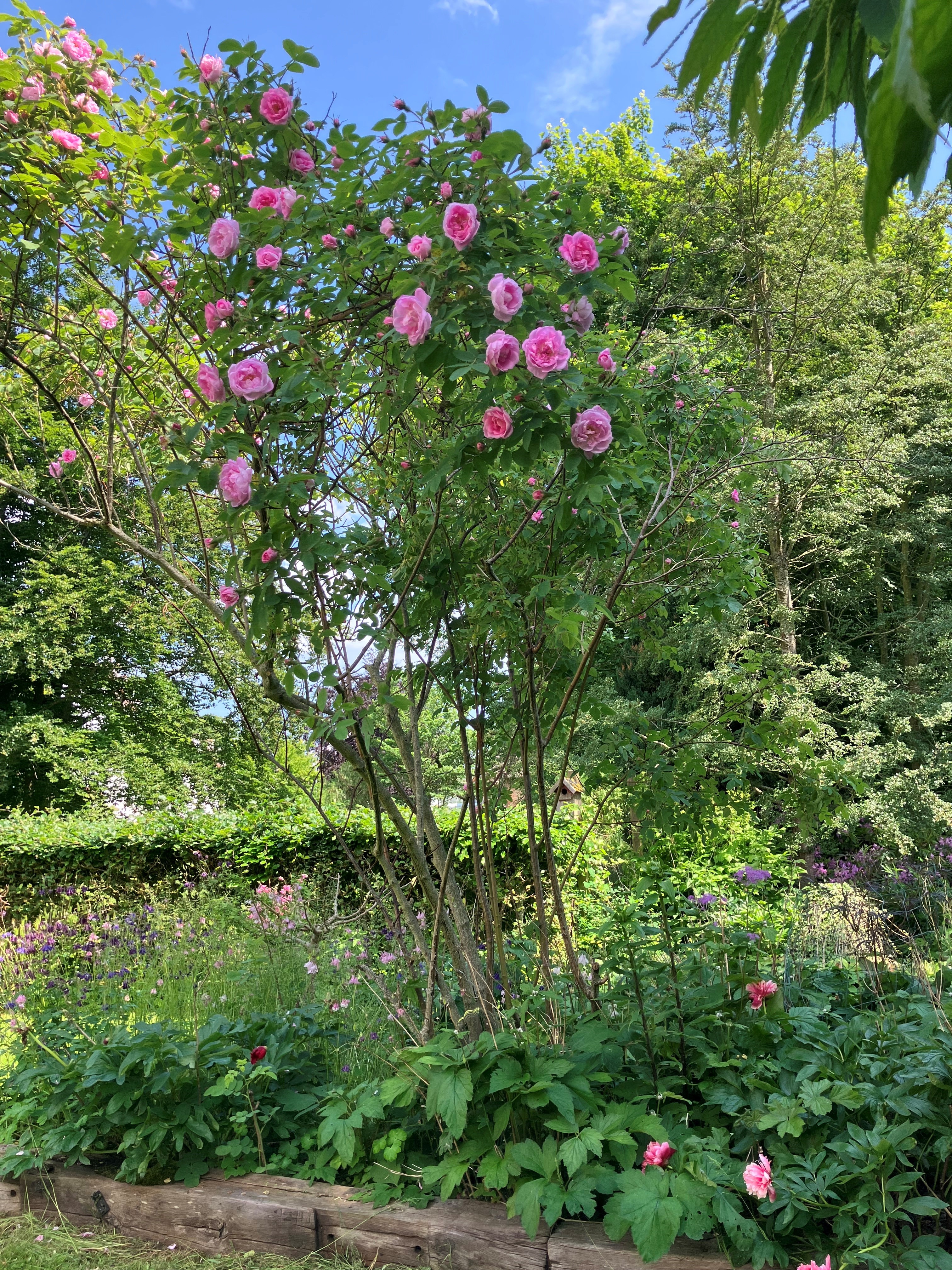 Der har ikke været megen tid i egen have i juni. Vi havde i stedet en fremragende haverejse til Norge med skønne deltagere og senere et fint jordbær arrangement hos planteskolen Hillis. Se billederne. Der bliver ingen rødbeder, bønner, drueagurker, asteres med mere i år - sneglene er i overtal og monster sultne. Heldigvis fik jeg besøg af min søster fra Norge, der gav en hånd med lugningen, det var også virkelig hyggeligt. Som altid tog vi på planteskoleturné. Rosenbilledet er min egen norske Hurdalsrose.