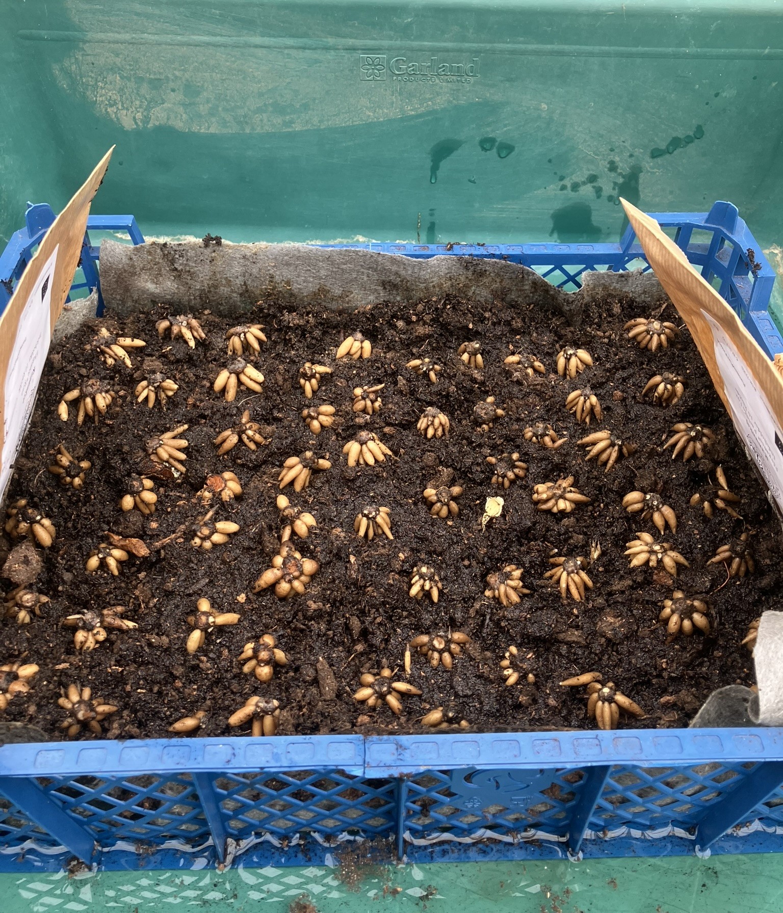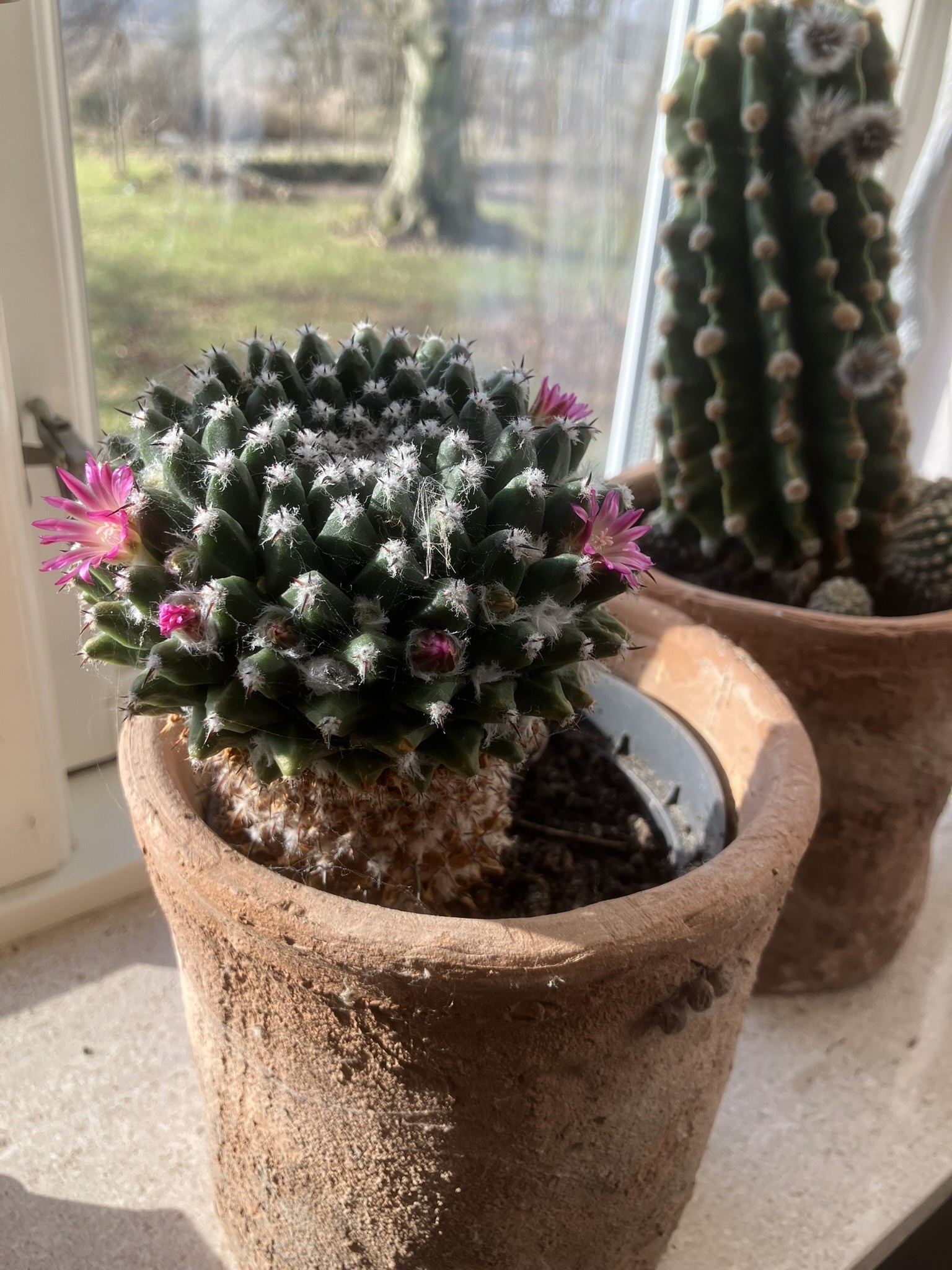 En frø-rulle? Jeg skal da prøve den nye trend, at så i en rulle - set på Instagram. Jeg har sået sellerifrø. Det bliver spændende at se hvordan det forløber. Den første ranunkelspire er dukket op, håber der kommer mange flere. De er sat for præcis en måned siden i drivhuset. I mellemtiden skal sæsonens blomster nydes. Cyklamen lyser godt op i det visne løv. Lego har også fået øjnene op for havefolket:) Denne æske fik jeg af kollegaer da jeg gik på pension, det er da meget sjovt. Og så skal I da have et billede af den blomstrende kaktus i vindueskarmen. Så selv om der stadig er vinter, er der allerede blomster alle vegne.