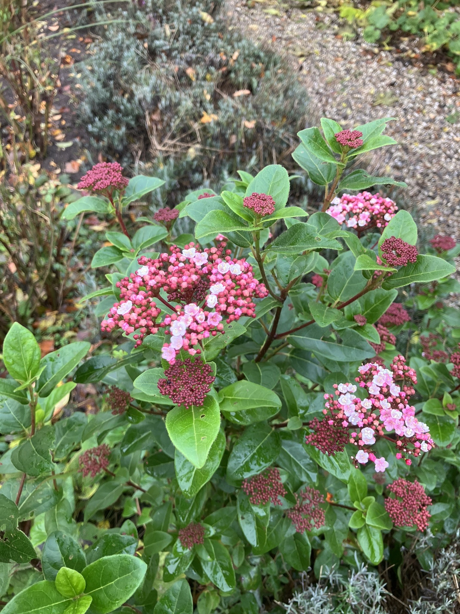 Det har været en ren nydelse med det flotte efterårsvejr og de fine farver i have og natur. Det sidste er høstet i drivhuset. For første gang har jeg prøvet at sætte ingefær, ikke det store udbytte, men det er da sjovt at få dem hjemmedyrket. Pelargonierne er ved hjælp af børnebørnene, kommet på plads indenfor, i vindueskarmene Oktoberkaktussen er klar til det store blomsterflor - egentlig synes jeg den er kønnest når blomsterne er i knop. Jeg holder meget af den stedsegrønne Vintersnebolle Viburnum Tinus, der blomstrer så fin nu. Den frøs lidt tilbage de første år, men nu ser den ud til at klare sig. Resten af november gøres der klar til at pynte op, indenfor og udenfor. Det er ikke min spidskompetence, så jeg vil glæder mig til Karsten Wejdemann kommer og demonstrerer hvordan man kan lave juledekorationer den 17. november på biblioteket i Haslev (se under arrangementer).