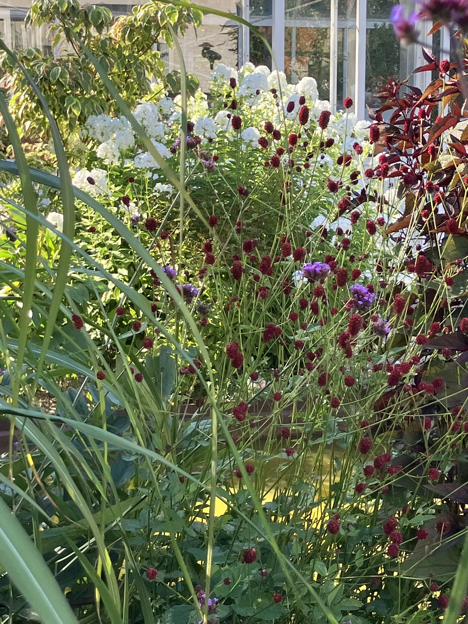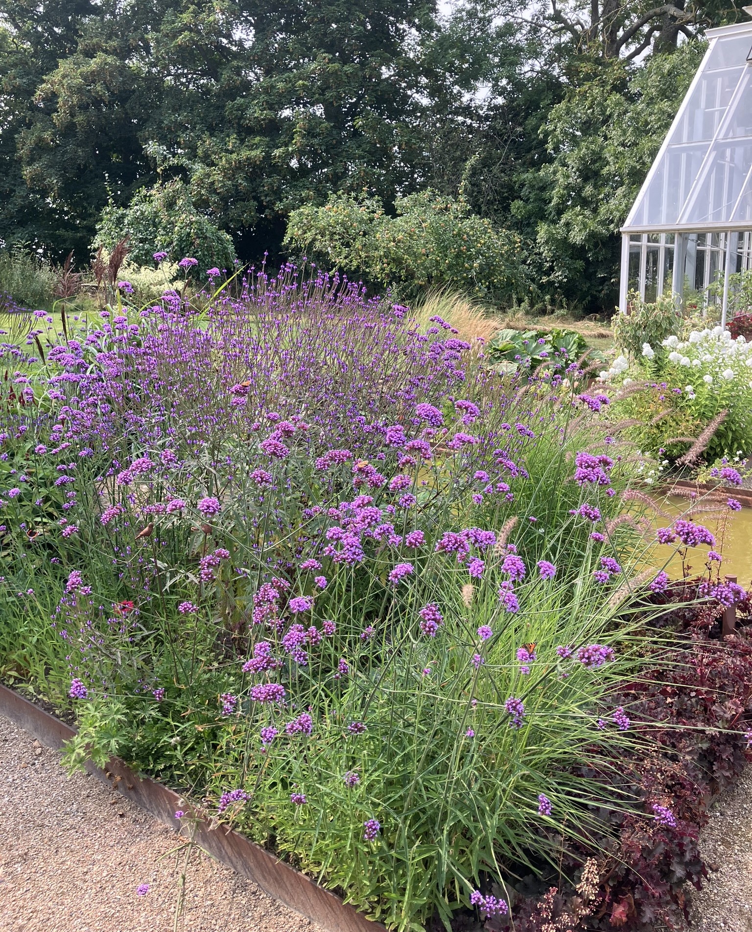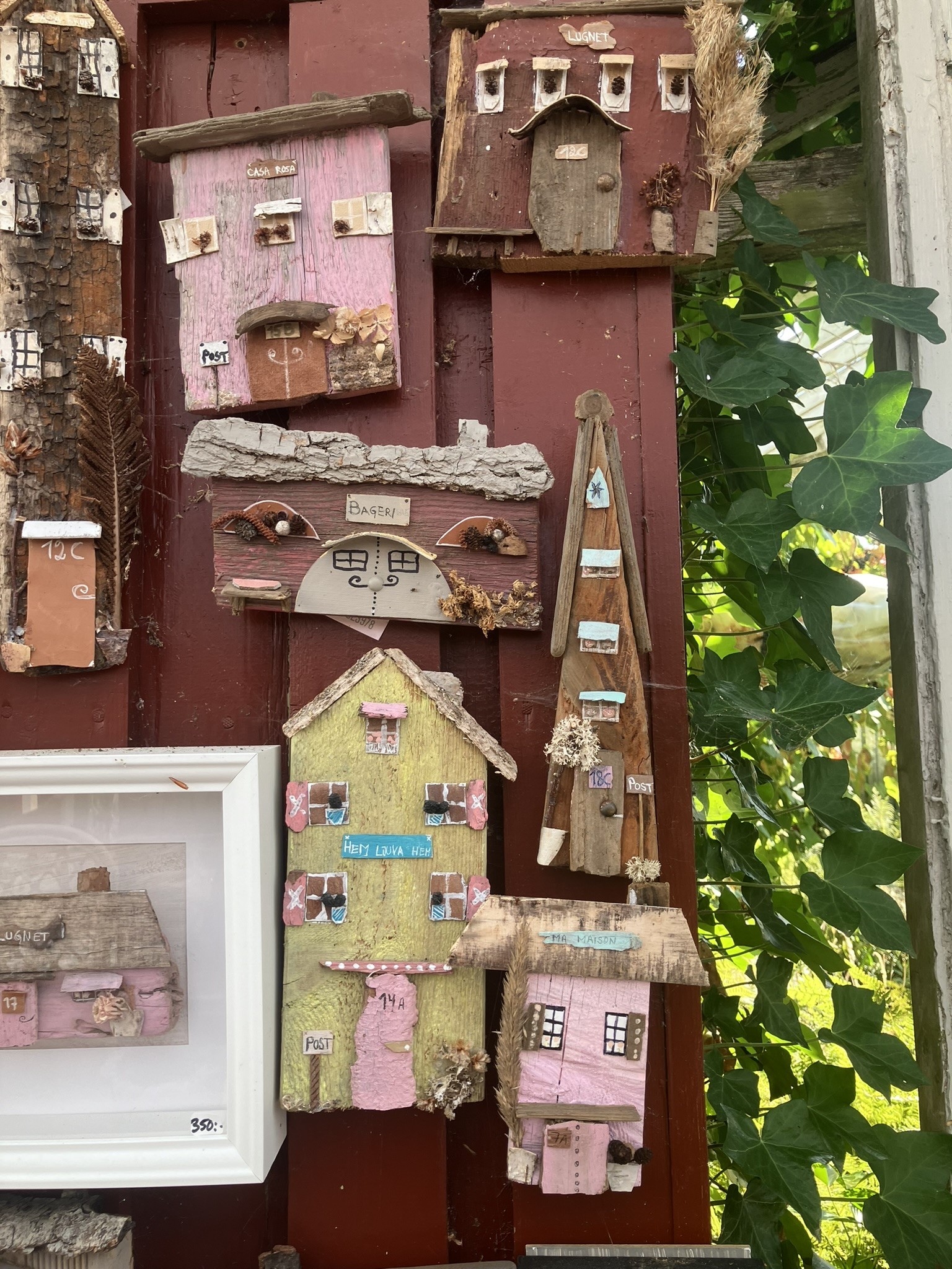 I weekenden var jeg med en flok glade havedamer i Sverige, og besøgte Norrvikens trädgårdar. Et helt fantastisk sted. Måske skal vi lave en bustur dertil, en gang. Det er mig med hatten:). Desværre blev vi nødt til at aflyse Faxe afdelings bustur til det fynske pga. for få tilmeldinger, vi skulle ellers have set 6 flotte haver... Billedet med de fire glas, er en gentagelse af et meget vellykket eksperiment, jeg lavede for et par år siden. Den 20. juli høstede jeg grønne sveskeblommer og lagde dem i saltlage i en skål med låg på. De har stået på køkkenbordet og fermenteret i 7 uger. Nu er de lagt på glas med olivenolie over. De smager og har konsistens som grønne oliven, med en svag smag af blomme. De skal helst stå fra nu og til sommer før de spises. Det kan virkelig anbefales. Billedet med de små huse har jeg taget for, at anvende som inspiration til hygge med børnebørnene. Og så skal I da også have et billede af verbenaer af forskellige slags, der fuldstendig har taget overhånd i bedet - men smukke er de.