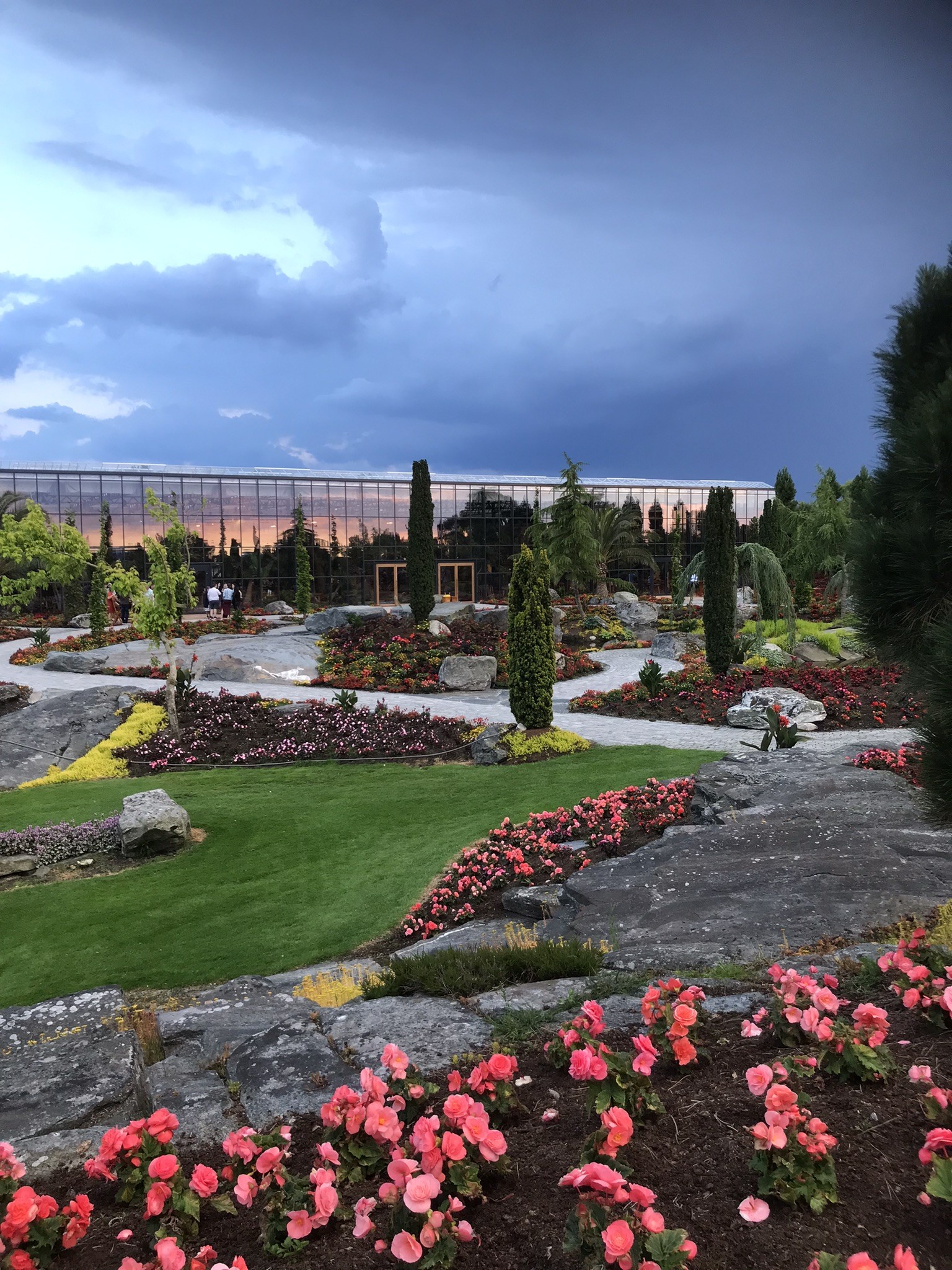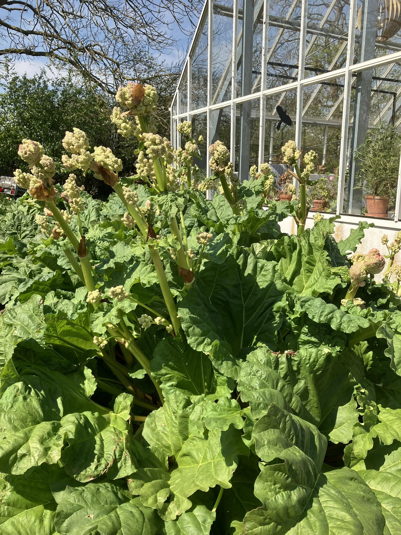 I maj måned er der meget at gøre i drivhus og have. Der prikles og plantes i drivhuset. Den tofarvede bøg er sprunget ud. De store prægtige rabarber pryder drivhusets endegavl, og fiskene svømmer livligt rundt i det store bassin.