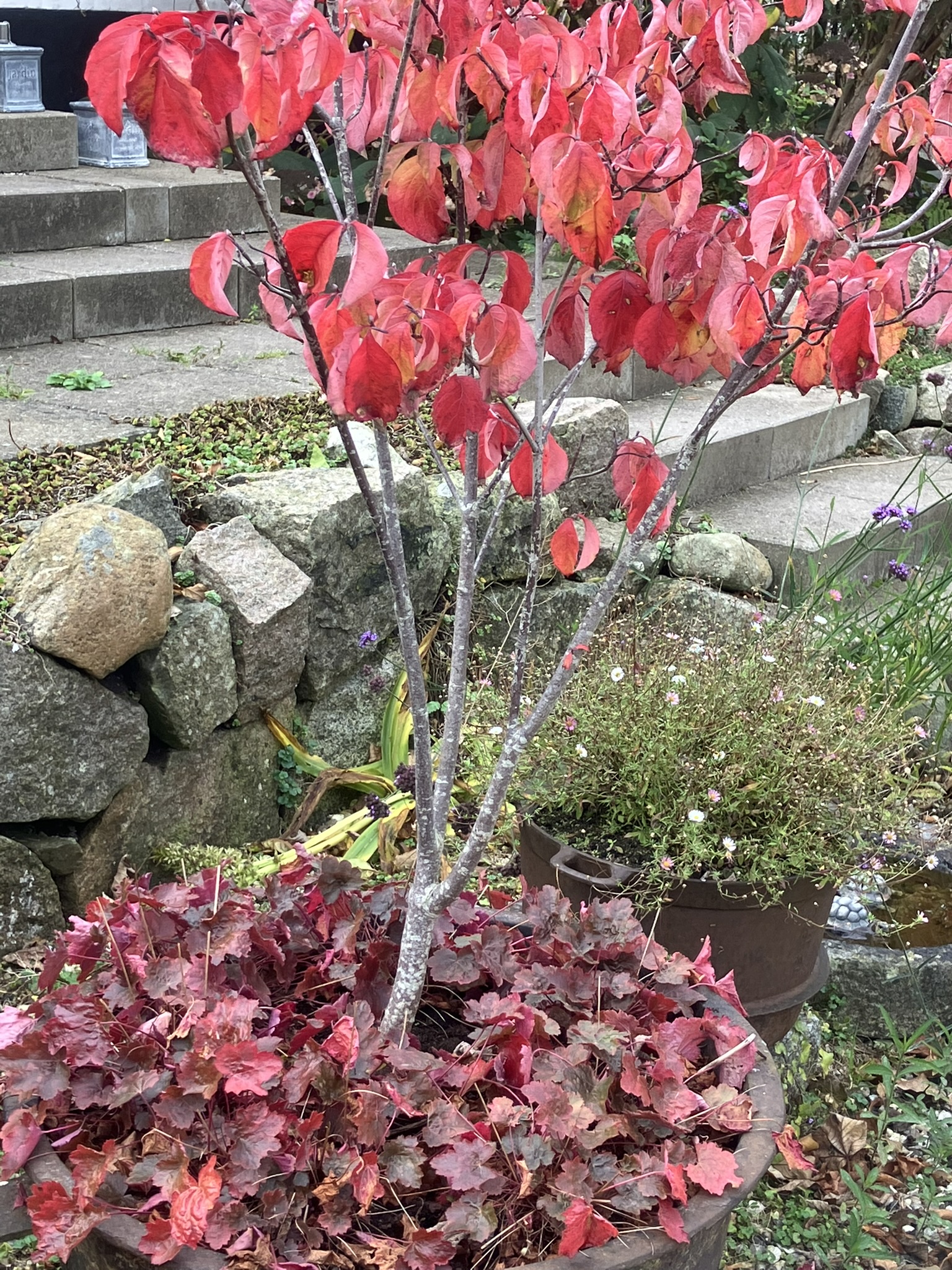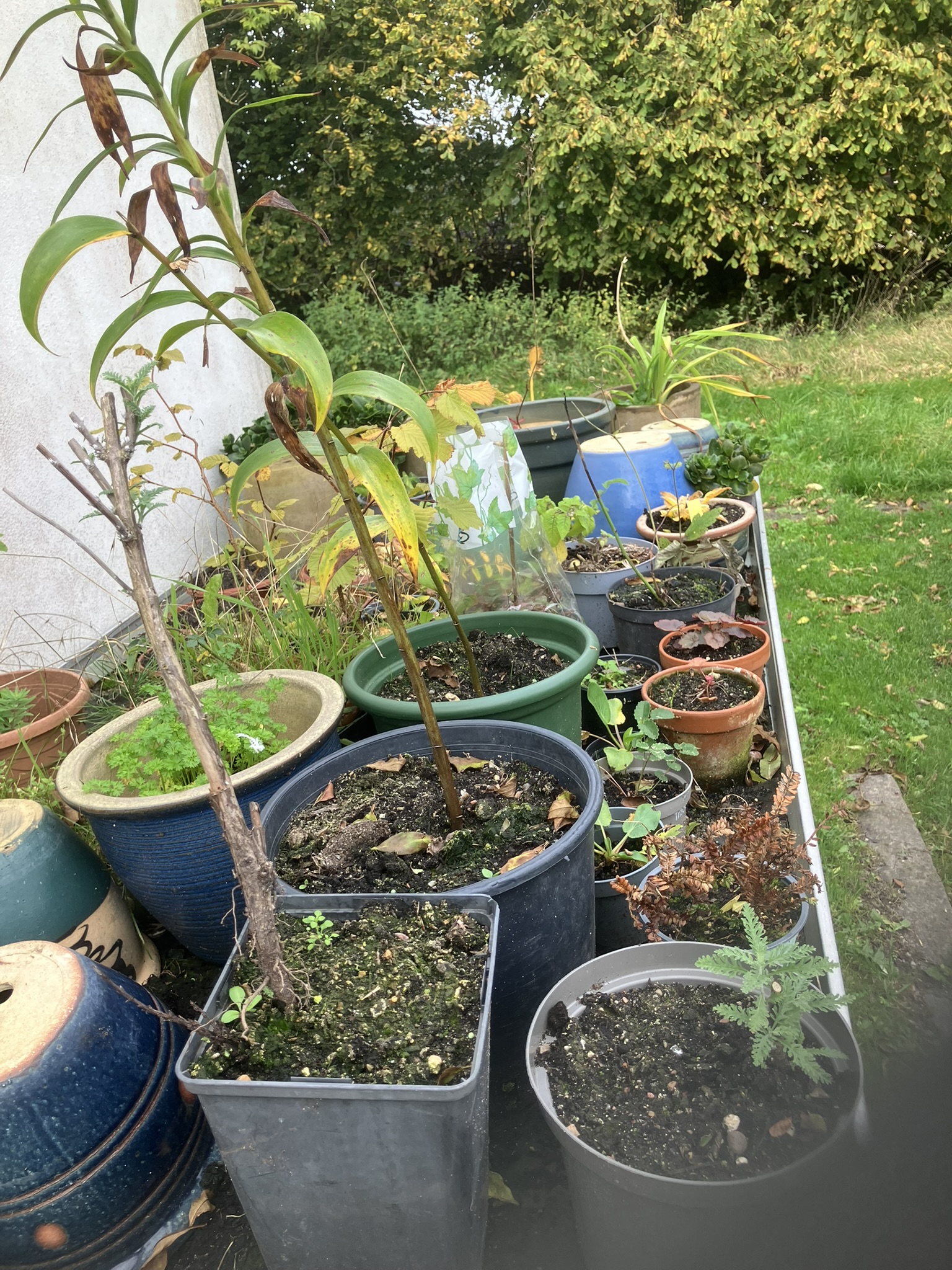 Hvor er det dog nogle herlige havedage her i oktober, mildt vejr og jorden hos os er tilpas fugtig og let at arbejde med. For en gangs skyld har jeg fået gjort flere bede vinterklare med lugning og omplantning. Det er en dejlig fornemmelse. Der står virkelig meget skrevet om beskæring af træer og buske, både om hvordan og hvornår det er bedst. Det kan jeg ikke tage mig af - jeg beskærer bare når jeg kommer forbi noget, der lige der og da, ser ud til at trænge til at blive studset eller fortyndet. Ofte prøver jeg at lave stiklinger af det jeg klipper væk - og nogle gange lykkes det.... der er et billede af en lille koreakornel jeg selv har lavet. Lige som mange andre har vi haft overflod af æbler i år. Der er lavet juice og mos. Alligevel er der en stor del der falder ned til glæde for høns, rådyr og andre, men vi har så en daglig opgave med at befri vores robotklipper der ikke kan tygge sig igennem de store æbler. Jeg syns ellers vi er flittige til at samle op.