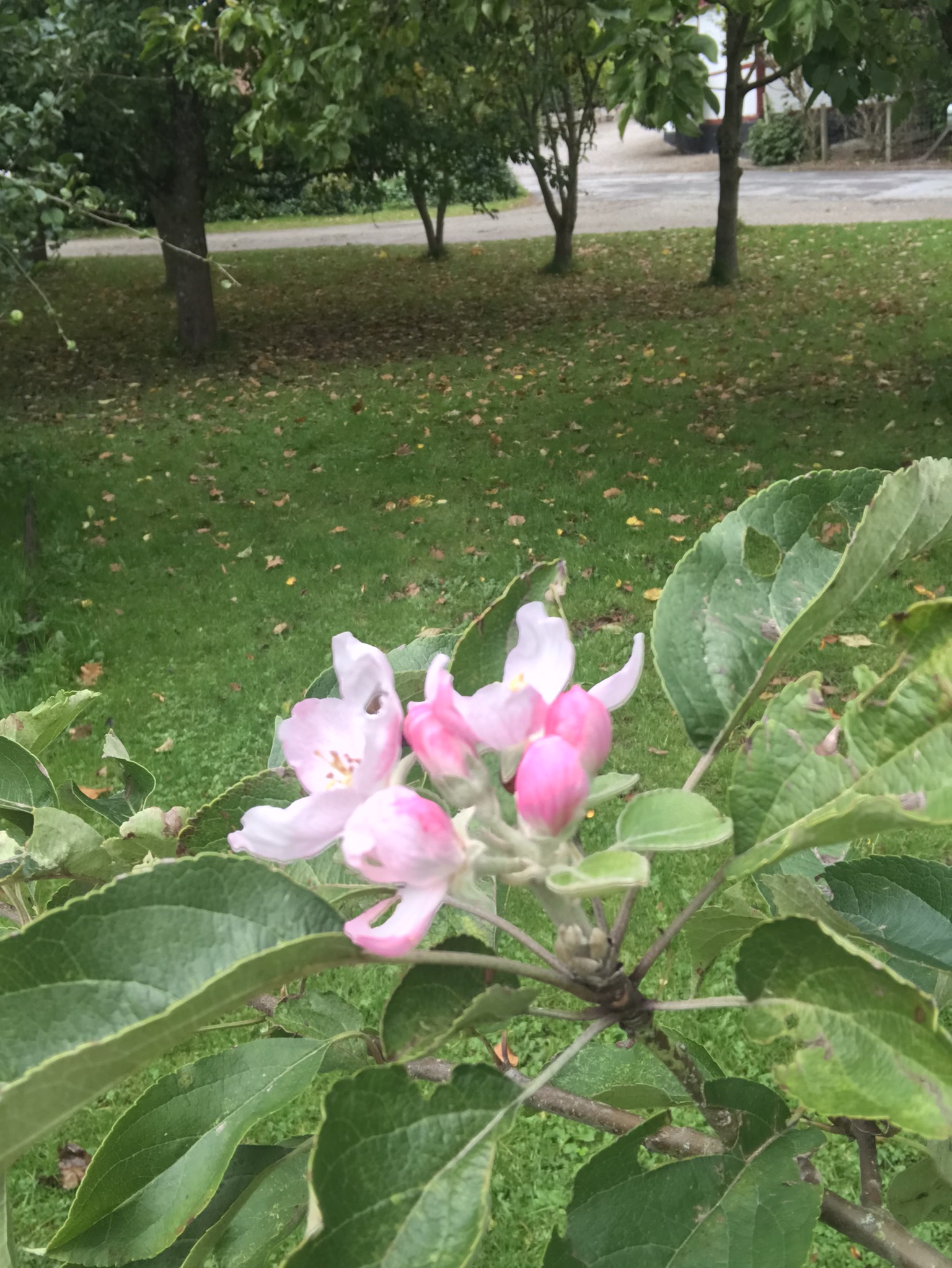 Roen har sænket sig , græskarene er høstet, delt ud til familie og venner og pynter ved døren. Det har været vådt, men lunt. Der er blomster på Ananasæbletræet. Det er ikke alle pelargonier der er kommet ind fra drivhuset endnu, men det skal jeg nok nå. Jeg glæder mig til foredraget med Pelargoniepigerne den 30. april næste år, har hørt at de også medbringer planter for salg:). Nu er tiden ved at være inde til at lave dekorationer og jeg vil hente inspiration den 23. november hvor Hanne Utoft kommer til Næstved.