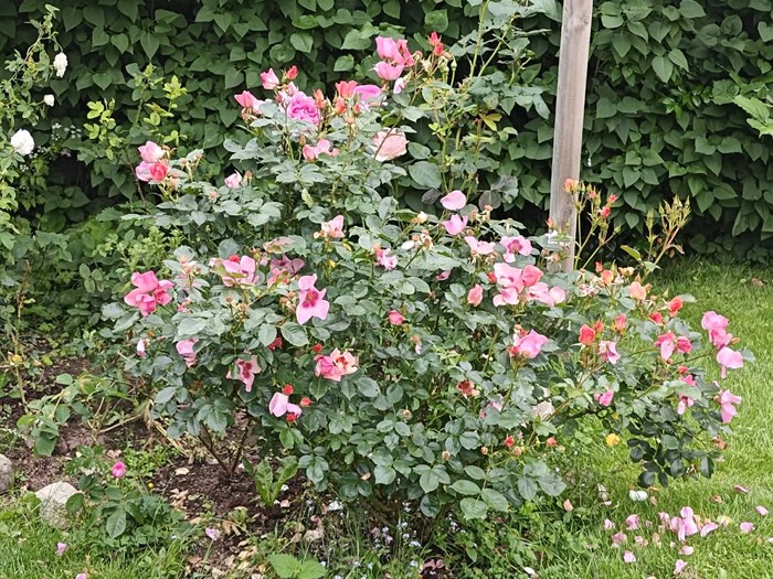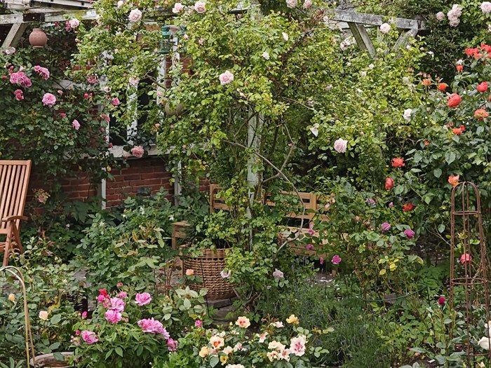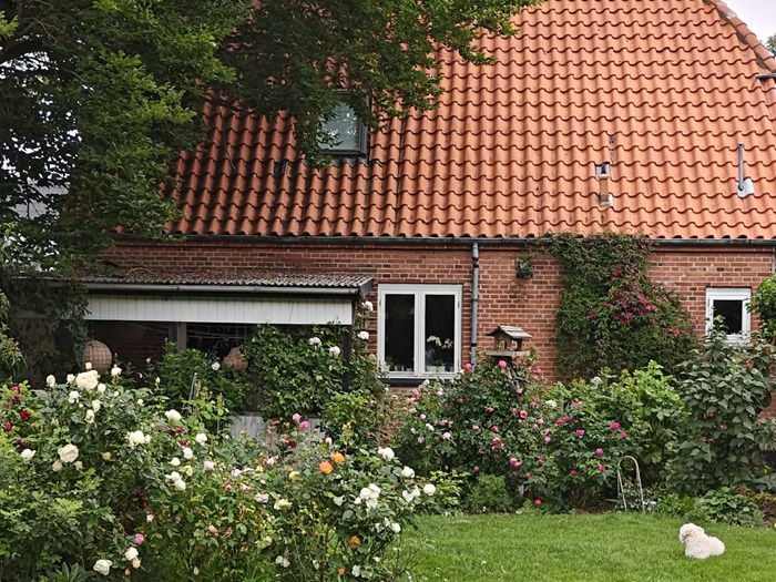 De seneste fem år har vores interesse for roser gået fra en enkelt til næsten 130 roser. Bedene er organiske og under den smukke store bøg har vi lavet et lille vandhul, hvor salamander og frøer hygger sig. Pindsvinet er her også og skrubtudsen bor under kvaset.
