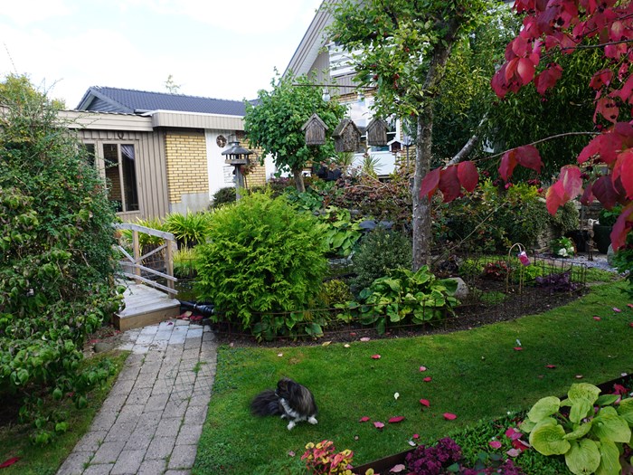 Karen og Helge har en spændende plantesamler have, med mange skønne planter, der er også et fint drivhus En havedam med karper er der også blevet plads til. En rigtig lille perle.