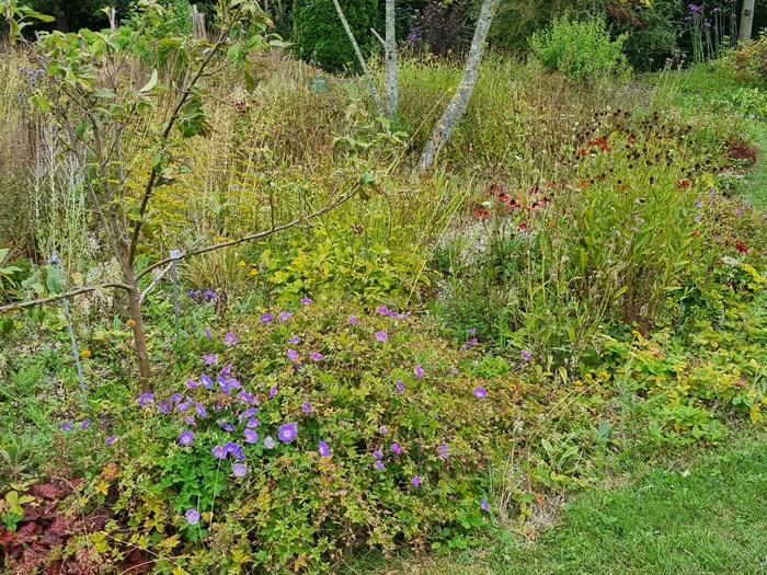 De såede bede klippes ned i efteråret. Her spredes også frø, Ulla har sanket.