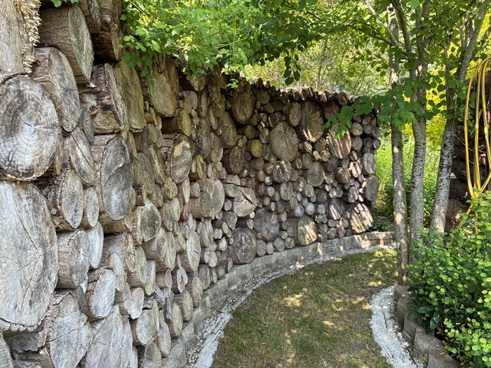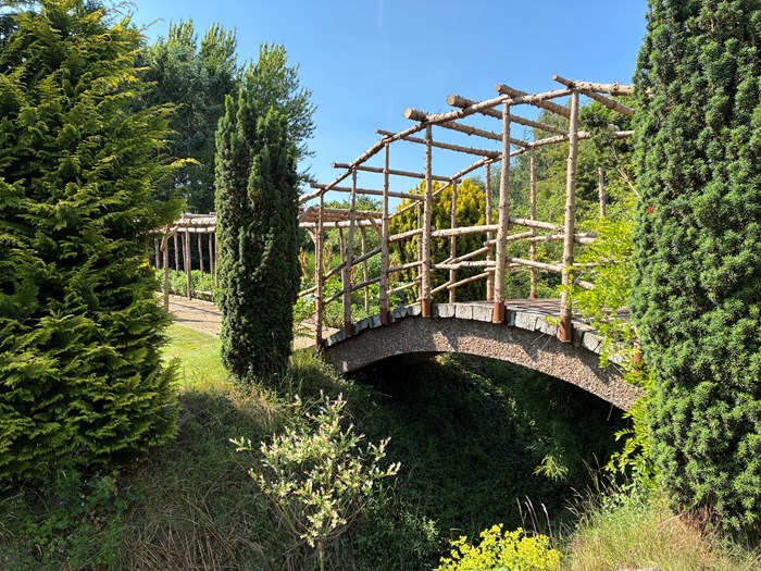 Danmarks måske længste pergola på 100 meter. Kvasbunke der fyldes op om vinteren og om sommeren overgros af rosen Lykkefund. Rigt planteliv af stauder, buske og træer. Udsigtspunkter, siddepladser og lange kik. Snoede stier forbi havebassin, sø, lille skov over grøft på svævende broer. Frugtalle´og meget mere. Og nye projekter er på vej.
