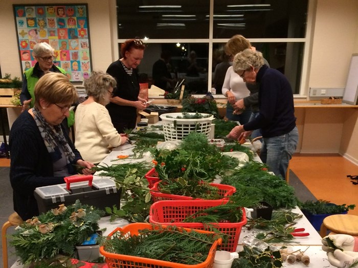 Alt efter hvad I har lyst til at lave, bedes I selv medbringe saks og eventuelle skåle eller underlag, kranse, oasis eller lign.
