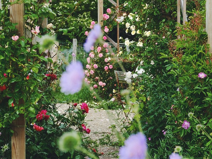 Sansehave med historiske roser, medicinske urter og hjemmehørende planter