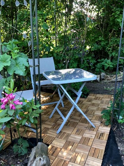 Vi startede i Vagns have med imponerende velplejede og yppigt blomstrende staudebede. Efter at deltagerne havde styrket sig på medbragt kaffe og Kims lækre muffins, gik turen videre til Birthes meget anderledes, men ikke mindre imponerende have. Den er omkranset af høje træer og man overraskes igen og igen, når man træder ind i nye rum i haven, der domineres af skyggetålende planter.