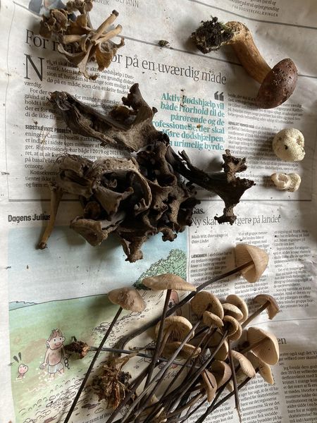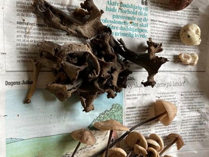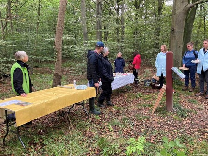 Alle pladser var optaget på holdet, da guiderne Birgitte Marcussen og Birger Marcussen startede svampeturen med en intro om spiselige og ikke-spiselige svampe. Deltagerne fandt især den spændende trompetsvamp. Der var ikke så mange forskellige svampe, men de fleste fandt alligevel en del. Alle fund blev grundigt gennemgået af guiderne, så alle kunne være sikre på at få gode svampe med hjem.