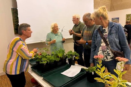 I sit foredrag med mange flotte billeder fra flokshaver i England og Tyskland fortalte Birgitte Husted Jensen om de mere traditionelle floks og storkenæb og om nye spændende sorter.