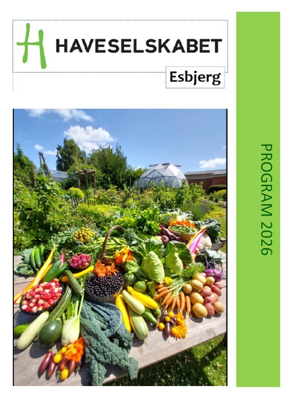Program for 2026: Onsdag den 4/2 kl. 19.00 Billedforedrag om ”Sommerfugle i naturen og vores haver” + generalforsamling Onsdag den 18/2 kl. 19.00 Temaaften om køkkenhaver og selvforsyning v/Emil Rindom Lørdag den 7/3 kl. 10.00 – 16.00 (Esbjerg) Workshop: lave porcelænsblomster - roser, lavendel og forsytia Lørdag den 14/3 kl. 10.00 – 16.00 (Ribe) Workshop: lave porcelænsblomster - roser, lavendel og forsytia Søndag den 8/3 el 15/3 kl. 14-16 (dato flytbar alt efter blomstring) Åbne forårshave med løg i Novrup Onsdag 27/5 kl 19-21 Åbne haver i Ribe midtby med udsigt til åen - Erik Mindesvej 12, Ribe Fredag den 5/6 (grundlovsdag) kl. 14.00 til 17.00 Plantemarked – Darumvej 70, 6740 Bramming + Åben have Weekenden den 6. & 7/6 Haveselskabets havefestival i hele landet. Søndag den 14/6 – heldagstur i bus Sommerudflugt til Christiansfeld Onsdag den 24/6 kl. 19.00 – 21.00 Havevandring i Kamp ved Obbekær/Ribe Torsdag 25/6 til søndag 28/6 - Haverejse til Lolland - Vi besøger private haver på Lolland Onsdag den 12/8 kl. 19 – 21 åbne haver i Sønderho, Fanø Mandag 17/8 kl 19-21 Haven på Tradsborgvej, Tjæreborg Lørdag den 29/8 – Plantemarked i Kiekeberg, heldags bustur Lørdag den 26/9 kl. 10.00 til 13.00 Efterårsplantemarked ved Tambours Have, Karlsgårde sø, Sig/Varde Torsdag den 8/10 kl. 19.00 Temaaften om træer i haven og skovhaver v/Lene Juelsgård Onsdag den 18/11 kl. 19.00 Juleinspiration med Charlotte Nielsen fra Oksbøl