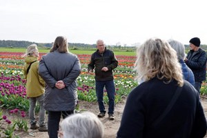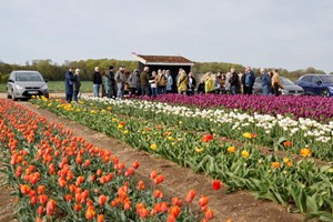 Mandag d. 28. april 2025, havde vi arrangeret en kør-selv-tur til tulipanmarkerne i Fole. Mogens Damgaard, som ejer markerne, fortalte livligt om arbejdet med tulipanerne året rundt.