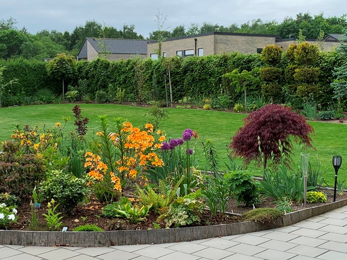 Anna og Erling startede haven på en godt 1000 m2 grund i 2019, de var heldig at få nogle træer med lidt højde med sig fra den tidligere have. De har forskelligt i haven; men også hosta og primula som de også sælger af.