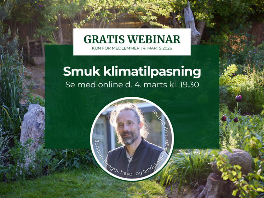 Haveselskabet vil gerne inspirere dig til at leve et klimabevidst haveliv og hjælpe dig med, hvad du kan gøre for at klimatilpasse din have. Vi har samlet en række artikler, så du nemt kan finde den viden og de ideer, der passer til netop dig og din have. Den 4. marts har vi desuden webinar om smuk klimatilpasning med Jonatan Bengta, som Haveselskabet har besøgt og som du måske har læst om i magasinet Haven nr. 1, 2026, der netop er udkommet.